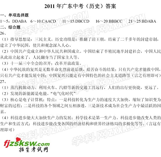 [组图]广东2011中考历史试题及答案