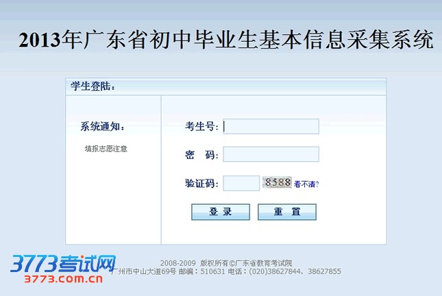 2013年广东省初中毕业生基本信息采集系统 http://www.ecogd.edu.cn/zkpt_ks/
