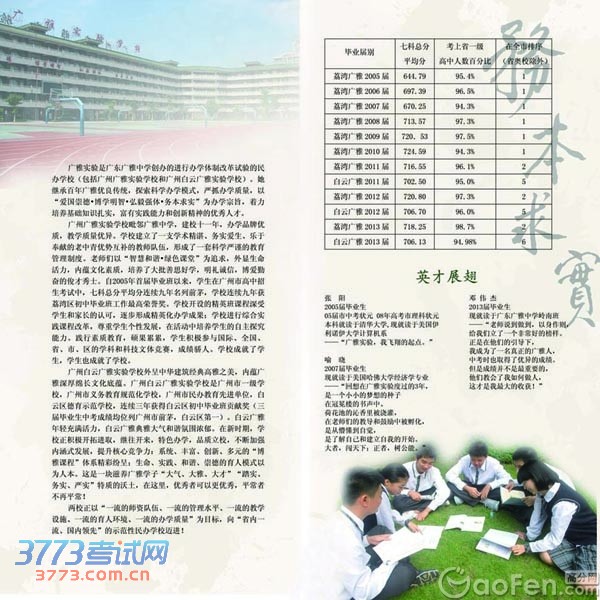 广州广雅实验学校:11000元/学期(不含膳食、校服费)