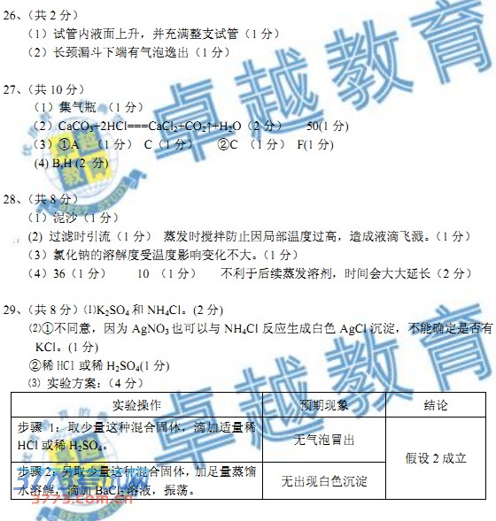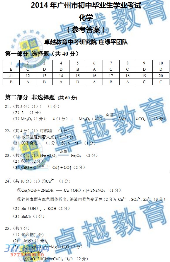 [组图]2014广州中考化学答案发布