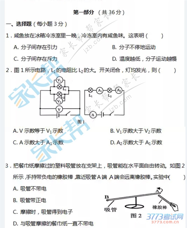 [组图]2015年广州中考物理试题及答案发布