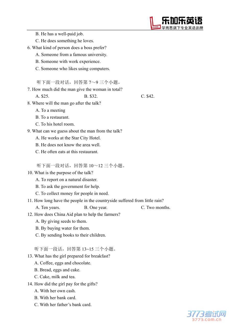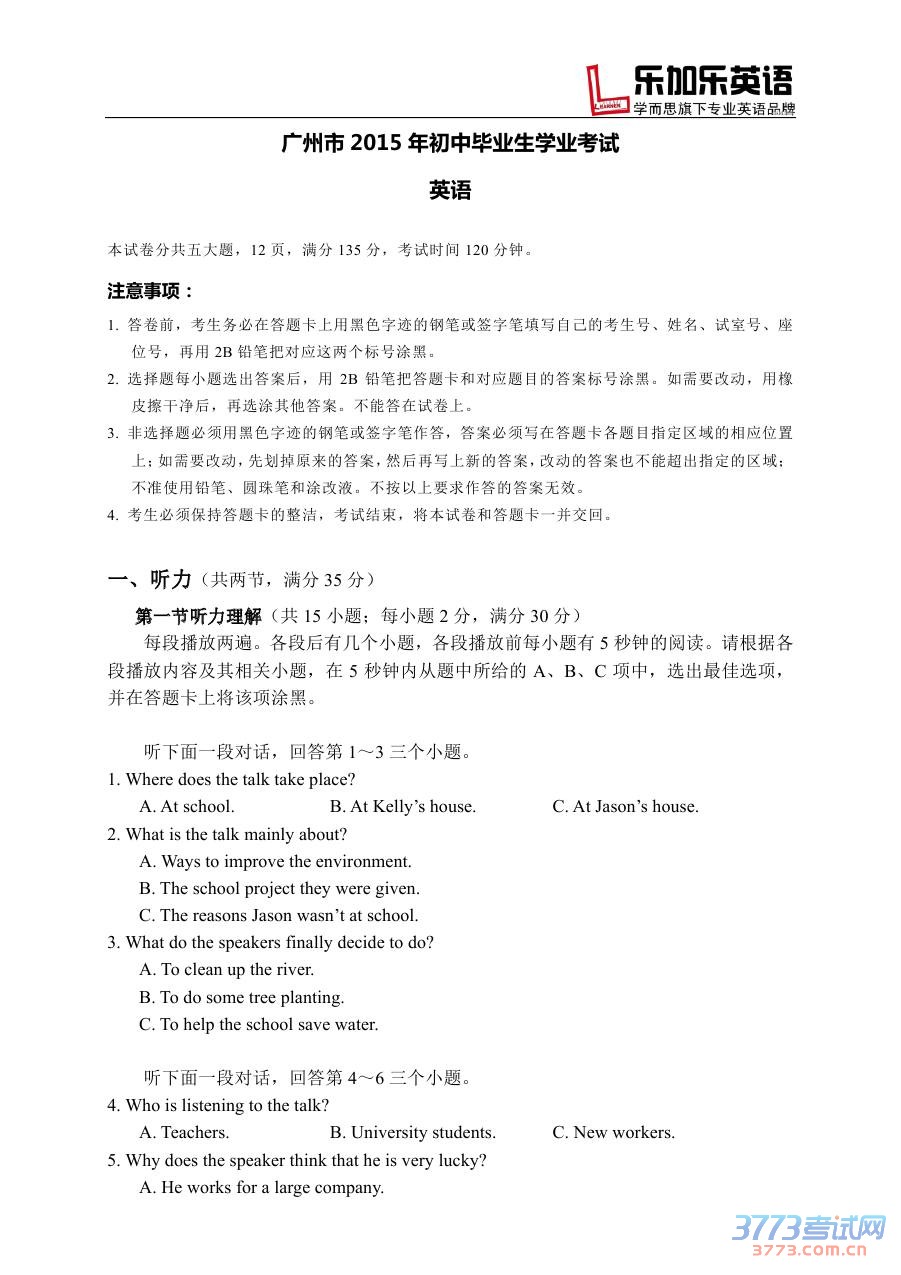 广州中考试题、答案和中考作文。祝各位考生都能取得好的成绩。2015年广州中考英语试题(图片版):