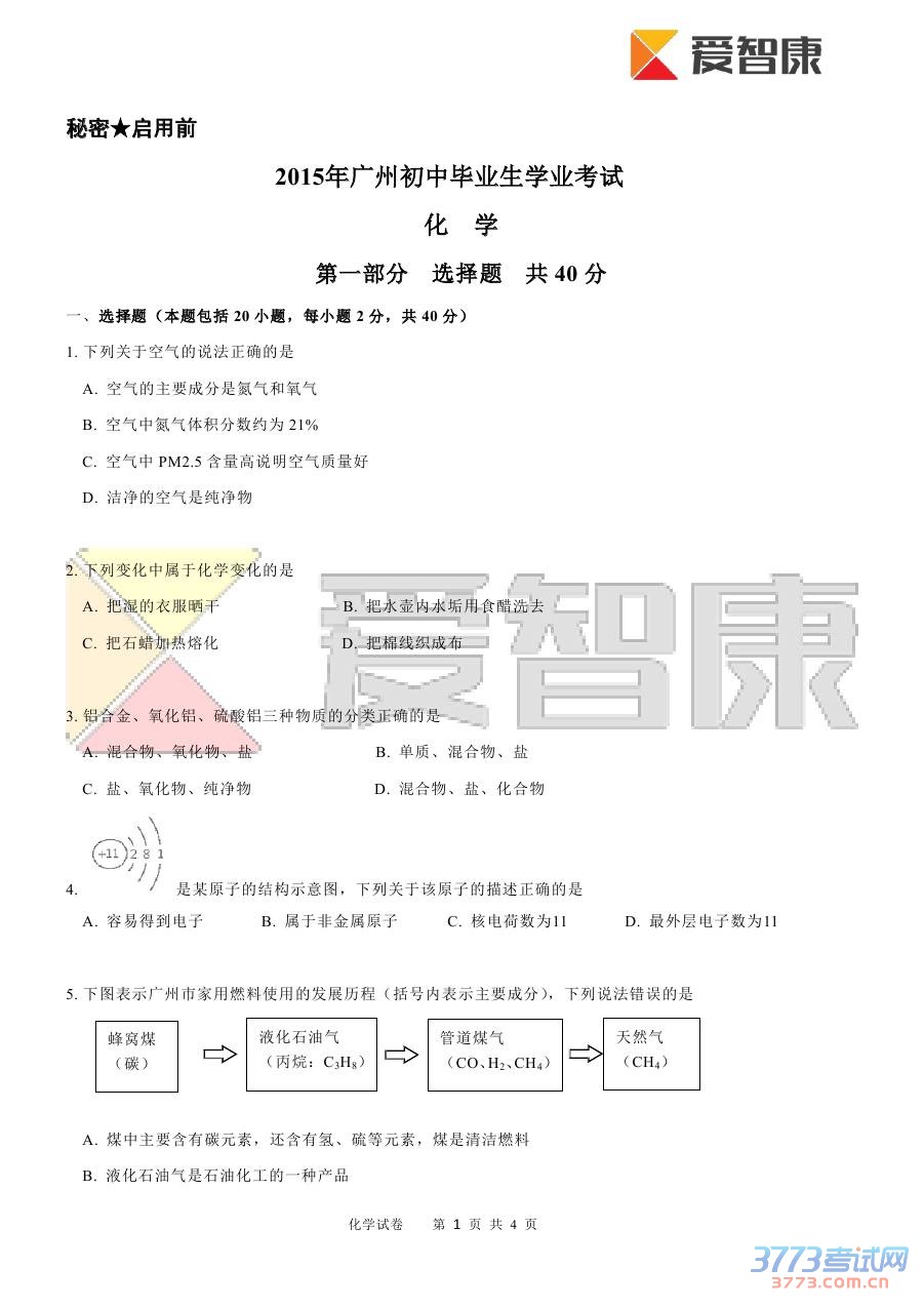 及时公布广州中考试题、答案和中考作文。祝各位考生都能取得好的成绩。2015年广州中考化学试题(图片版):
