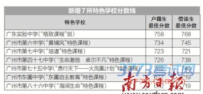 其中,省、市属示范性学校特色课程班分数线继续飙高,录取最低分数均达730分以上。尤其引人瞩目的是省实“格致课程”班,该特色班今年招收46人,录取最低分数达758分,而被录取的考生平均分高达764.37分。此外,同为首次独立招生的广州市第六中学“黄埔风”特色课程班分数线也达734分。