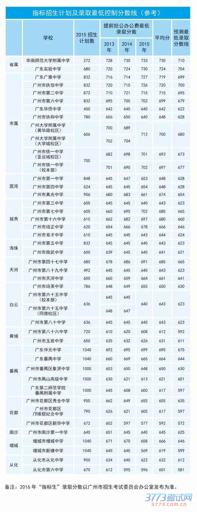 [组图]2016广州中考指标生政策公布 可能会影响录取分数线