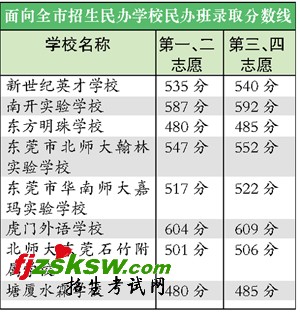 本报讯 (记者张颖妍)记者昨日从市中招办获悉,继东华高级中学和光明中学民办班录取后,同属列入分片招生和镇街内招生的公办普通高中和民办普通高中的民办班的“第二批”录取学校的录取分数线正式公布,而“第二批”学校的招生工作也随即展开。