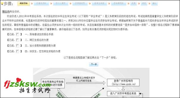 2011年广州市高中阶段学校报名系统操作使用说明(考生)