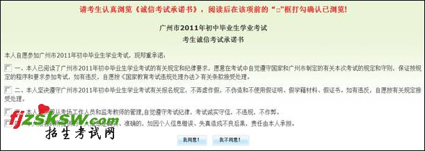 请认真阅读承诺书,如接受承诺书条款,请打“√”,并点击“我同意”进入下一步。否则点击“我不同意”放弃本次中考报名。