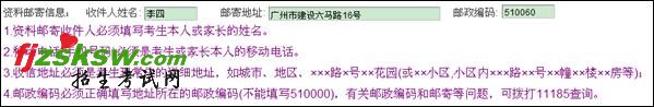 (8)资料邮寄信息:准确填写资料邮寄的收信人、邮寄地址和邮编,确保及时收取有关资料。填写前请仔细阅读界面上的提示,如下图: