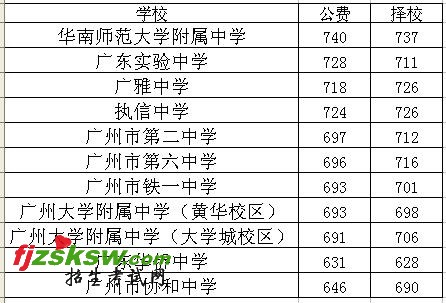 今天上午,广州市招考办公布了中考提前批十所面向全市招生的普通高中的分数线,各校分数线如下: