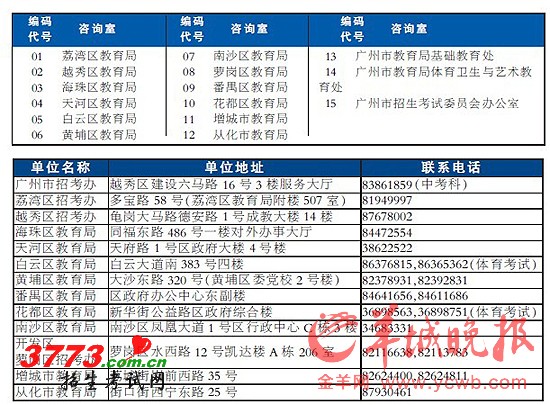 时间:3 月12 日12:00-14:00方式:广州市(包括12 区、县级市)考生请使用中国电信固话、天翼手机或小灵通, 在直播时间内拨打160 ,按3 号键(按市话标准收费,免收信息费) ,即可进入“阳光招考在线” 中考政策咨询,按提示音操作, 选择需要进入的咨询室进行轮候提问咨询, 轮候过程中可收听到其他同学的提问,当排队轮候到第一位,则自动进入咨询室与老师直接对话,提出问题。如在轮候期间希望转向其他咨询室进行咨询, 请挂机后重新拨打选择需要的咨询。(咨询室编码代号见右上表。)非直播时段, 考生可以拨打16880212 收听咨询会录音精华。