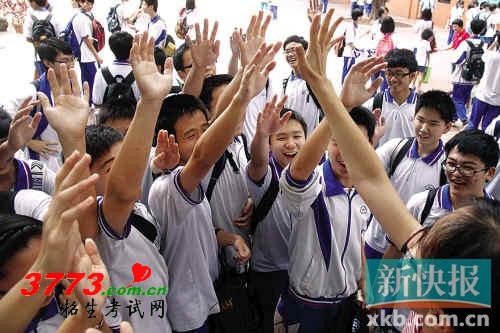 广州市培正中学考点,结束完考试的考生们与老师拍手庆贺。新快报记者 夏世焱/摄