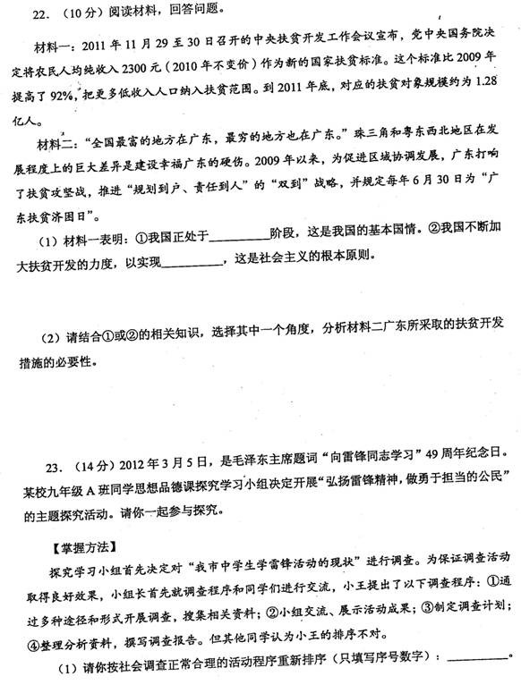 [组图]2012年广州中考政治试题答案发布
