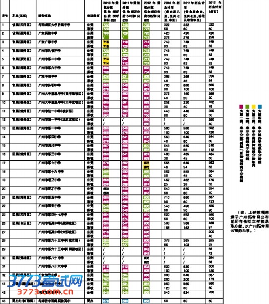从表中可以看出,近3年来广州市提前批学校中,公费择校倒挂仍然比较普遍,基本上市属和区属示范性高中多数有“倒挂”现象。据悉,去年广州市有25所示范性高中出现“倒挂”。而从表中可以看出,一些学校甚至近3年来年年出现择校公费倒挂,主要集中在越秀、荔湾、白云、天河、黄埔及萝岗区。且像白云、萝岗的示范性高中,近几年择校公费倒挂分数值较大。因此。考生在填报今年中考择校志愿时,除了了解这些历年招生分数外,更要仔细对比“倒挂”分值。