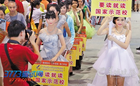 | 有学校在咨询会现场派出学生“走猫步”,展示学校风采 羊城晚报记者 陈秋明 摄 |
