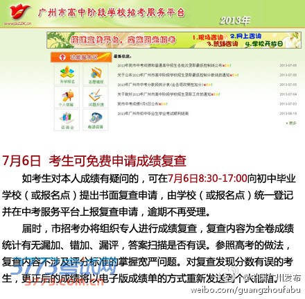 [图文]广州2013中考生今日8:30-17:00可免费申请成绩复查