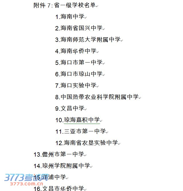 附件7:省一级学校名单