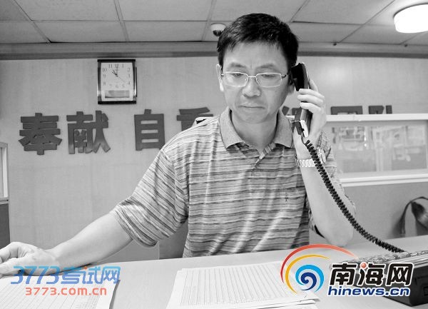 海南中学副校长陈辉在本报接听热线。南国都市报记者许欣摄