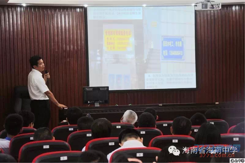 随后,王涵教导介绍了我校中考招生政策。他指出,今年秋季海南中学高一年级招生总数为924人,其中公费生有866人,包括面向全省统招711人、民族班50人、特长生65人、本校职工子女40人,另外中外合作办学实验班招58人。海南中学“少数民族特招班”计划单列,招50人,列入提前批次招生。符合条件的学生继续享受“三免一补”。而今年海中“宏志班”计划不单列,由海南中学从其第一批次录取的新生中挑选50名品学兼优、家境贫寒的学生就读,美籍华人林汉克先生每人每学年资助3000元,学校免除学费。有志报读海南中学“宏志班”的考生,须在报志愿时填报海南中学第一批次志愿。统招生入校报到后,还将根据个人专长兴趣及测试结果,填报志愿选班级,学校设立理科实验班、科技创新特色班、数学特色班、人文科学特色班各一个,云平台教学实验班2个。