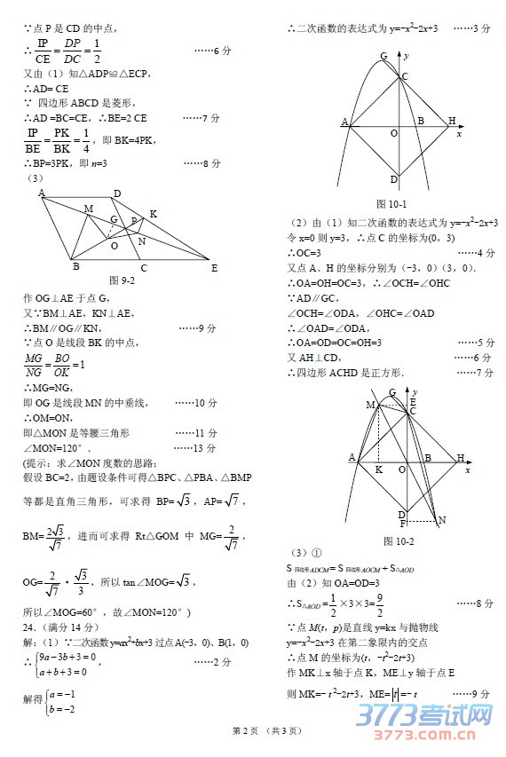 [组图]2015海南中考数学试题答案及评分标准发布