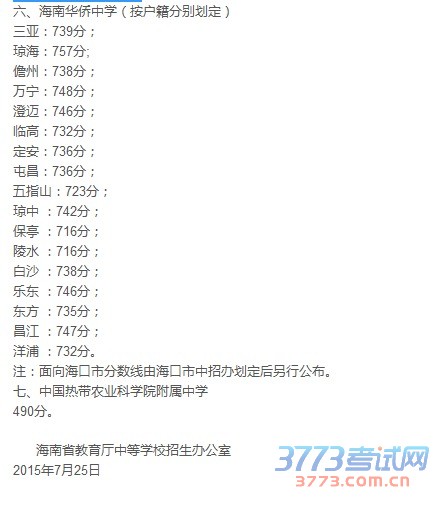 来源:海南省教育厅中等学校招生办 2015-7-25 17:21:35