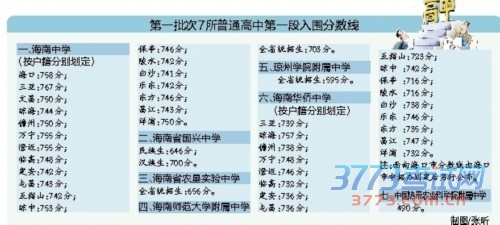 [图文]2015海南中招第一批高中第一段入围分数线划定