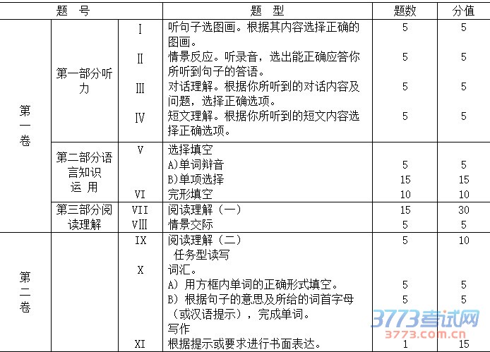 考查学生对全日制义务教育《英语课程标准》(2011年版)中规定的初中一、二、三年级英语基础知识(包括语音、词汇、语法、功能、话题)的掌握情况,同时结合基础知识,考查学生综合运用语言知识的能力。