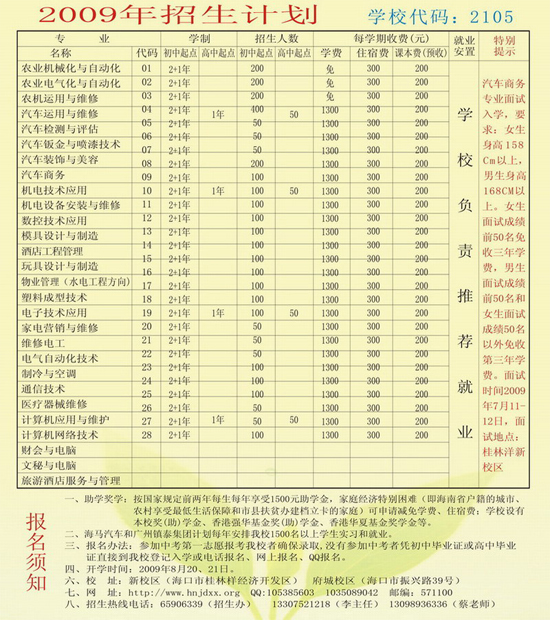 [图文]海南省机电工程学校2009年招生计划