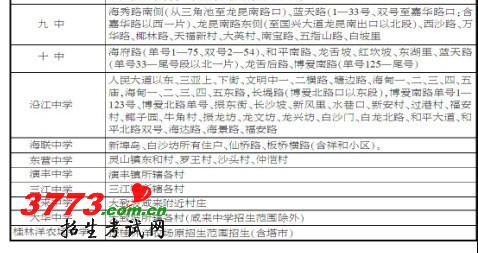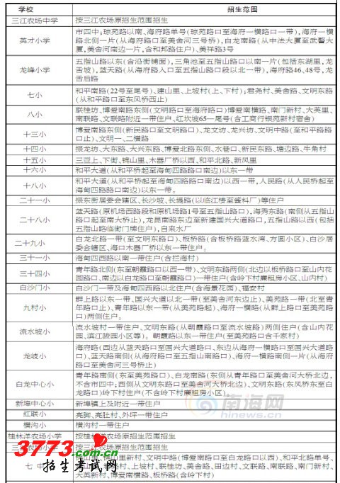 美兰区2012年秋季中小学招生范围划分表