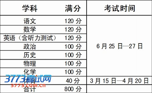全省统一考试、考查科目8科满分共800分;生物、地理每科满分100分。物理实验操作技能和化学实验操作技能直接赋予等级。