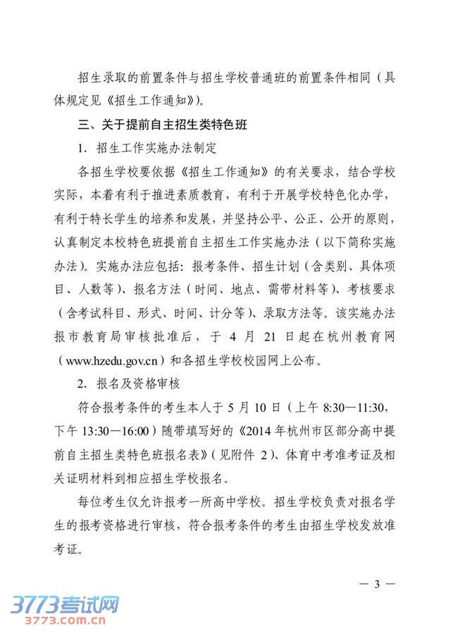 [组图]杭州市教育局2014杭州高中特色班招生工作的通知