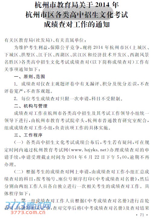 成绩查对工作在杭州市各类高中招生及其考试工作领导小组统一