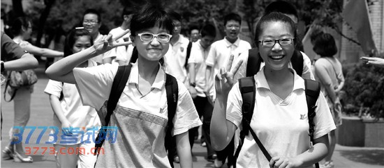 昨天上午第一场语文考试结束,杭州青春中学考点,两名女生微笑着走出考场。考生普遍表示,今年杭州中考语文不难。 记者 邵全海 摄