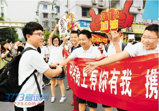 6月14日,在杭州建兰中学考点,不少保送生聚集在校门口,为同学加油鼓劲。记者 董旭明 摄