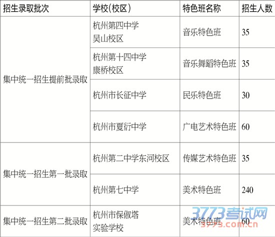 集中统一招生第一、二批录取特色班术科测试由各招生学校负责组织实施。其中,招收美术特色班的杭州第七中学、杭州市保俶塔实验学校将联合进行美术类术科测试。