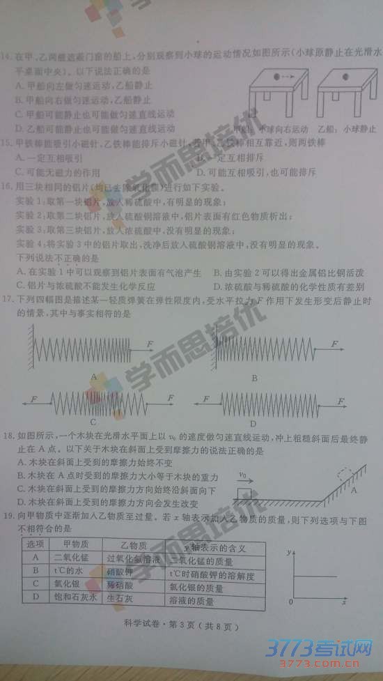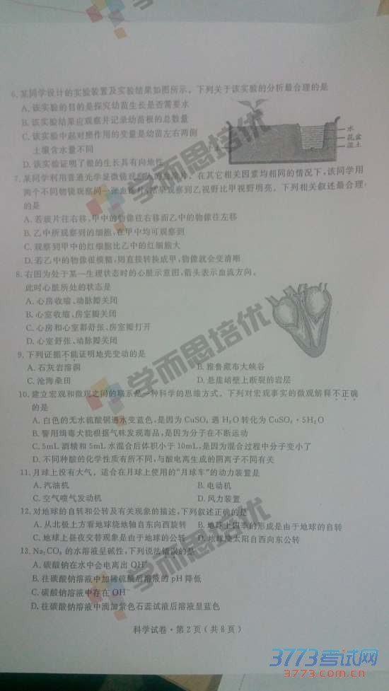[组图]2015杭州中考科学试题发布