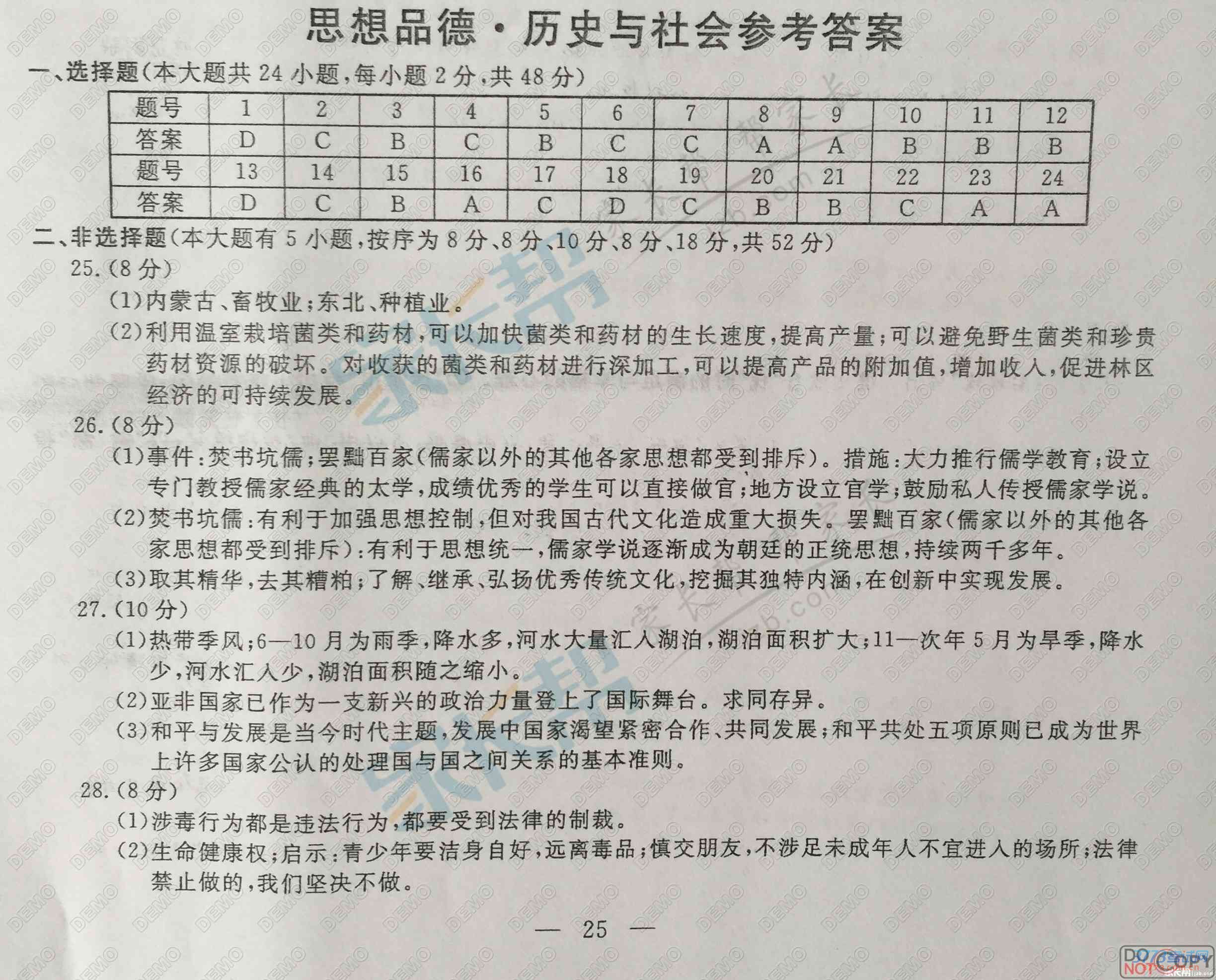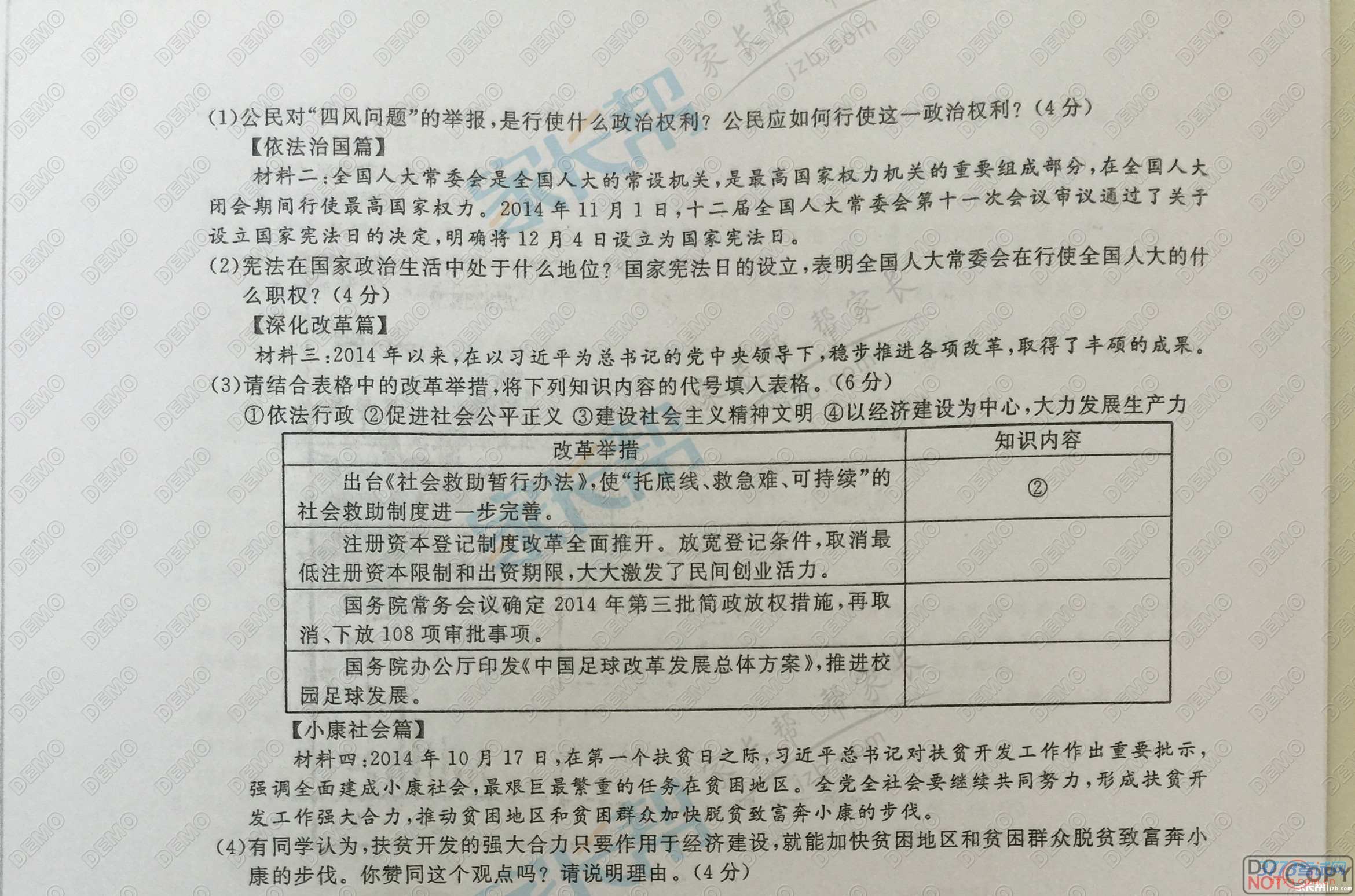 [组图]2015杭州中考思想品德历史社会试题及答案免费发布