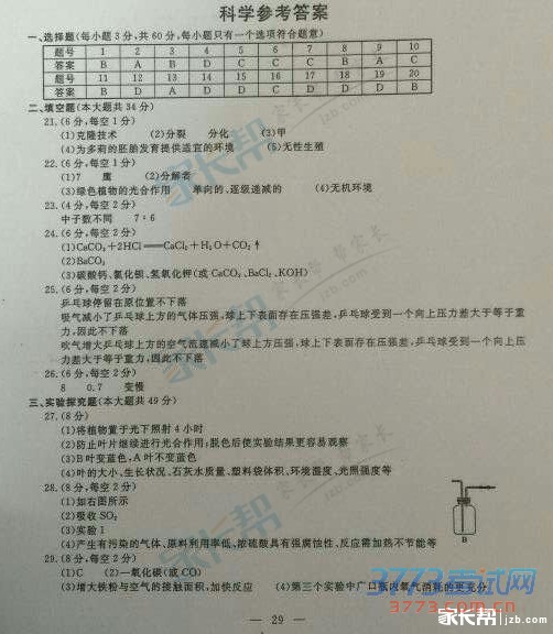 [组图]2015杭州中考科学答案免费发布