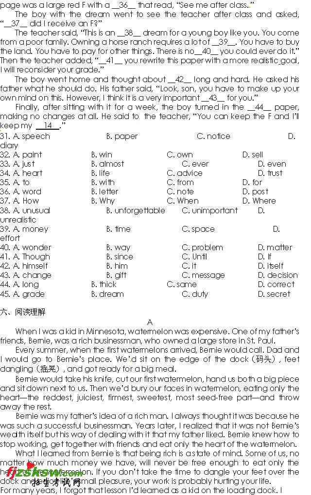 [组图]浙江杭州2011年中考英语试题及答案