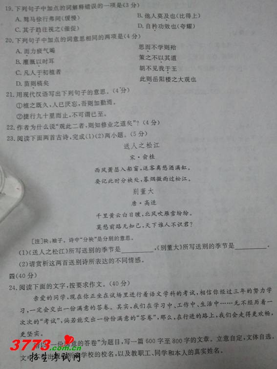 [组图]2012年杭州中考语文试题答案