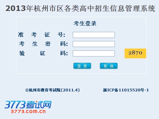 点击图片进入 2013年杭州市区各类高中招生信息管理系统