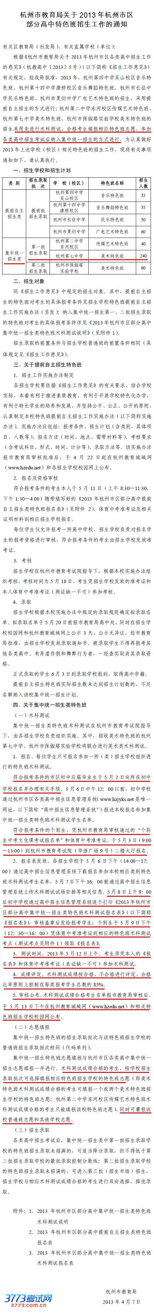 详见《杭州市教育局关于2013年杭州市区部分高中特色班招生工作的通知