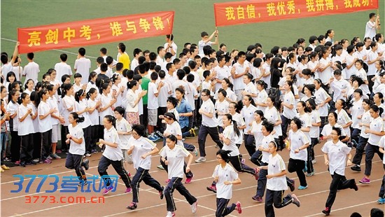 早就听说顺时针晨跑是这所学校的特色,初三学生临考前,也没有丢了这项传统。“学校一直重视体育锻炼,我每天早早到校,与老师们一起看学生们晨跑,就是希望学生每天都有健康的体魄,以充沛的精力和坚强的意志,迎接每天紧张的学习生活。可能是因为发型的缘故,早就有同学幽默地将我比喻成‘操场上准时升起的太阳’。”校长任继长对晨跑的理解很深刻也很幽默,他说,“最后一次晨跑,同样希望能赋予初三学生充沛的精力,不畏困难,迎接中考。”