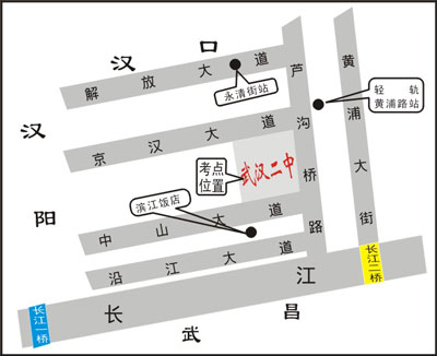 3、汉口火车站出站:509至永清街下,下车后问轻轨黄浦路车站即到武汉二中