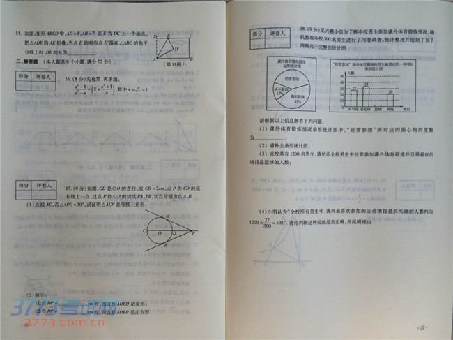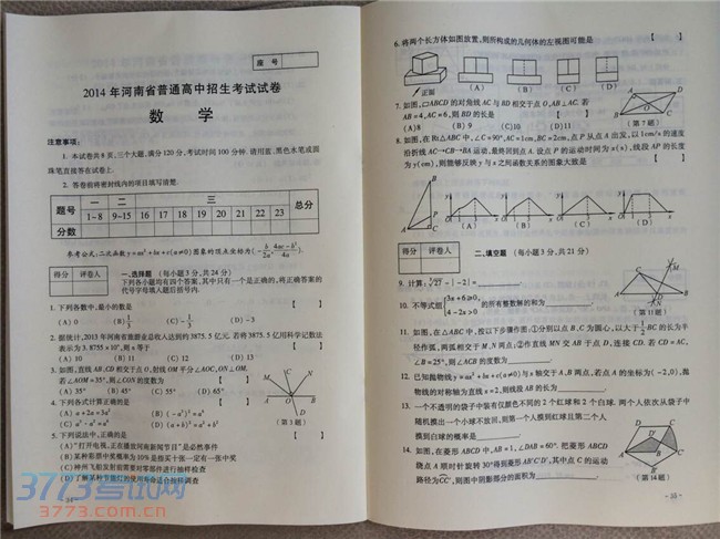 [组图]2014河南中招数学试题及答案发布(完整版)
