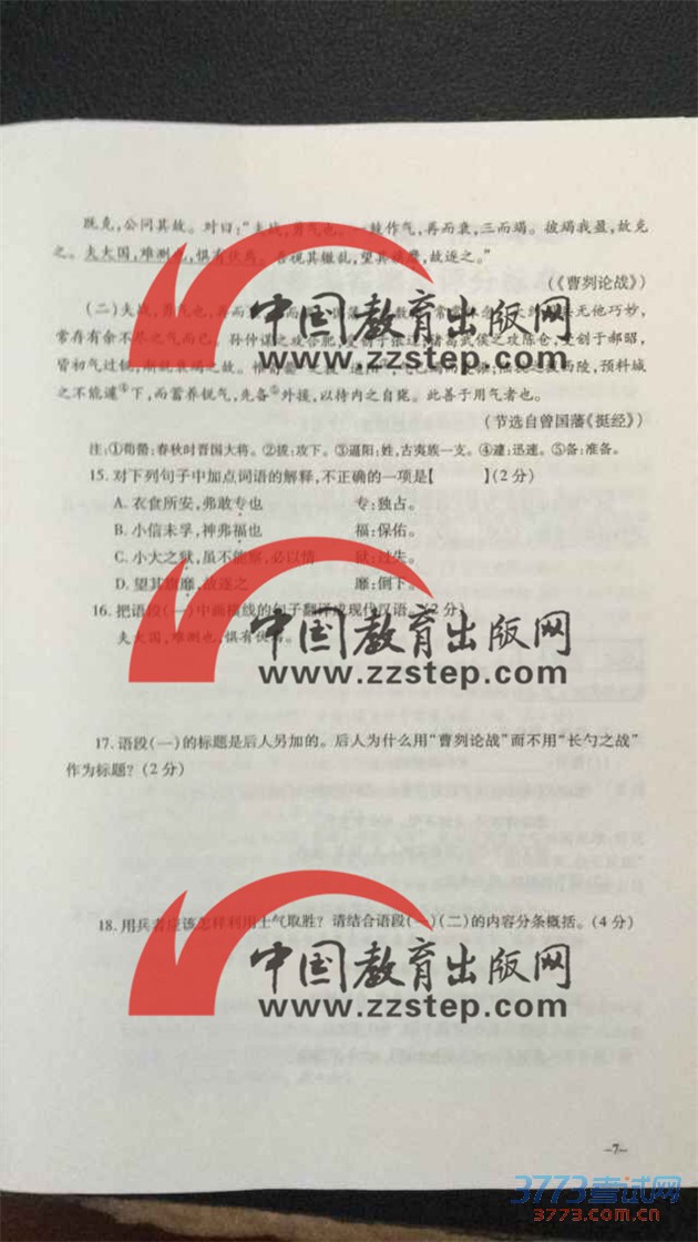 [组图]2015河南中招语文试题及答案评分标准发布