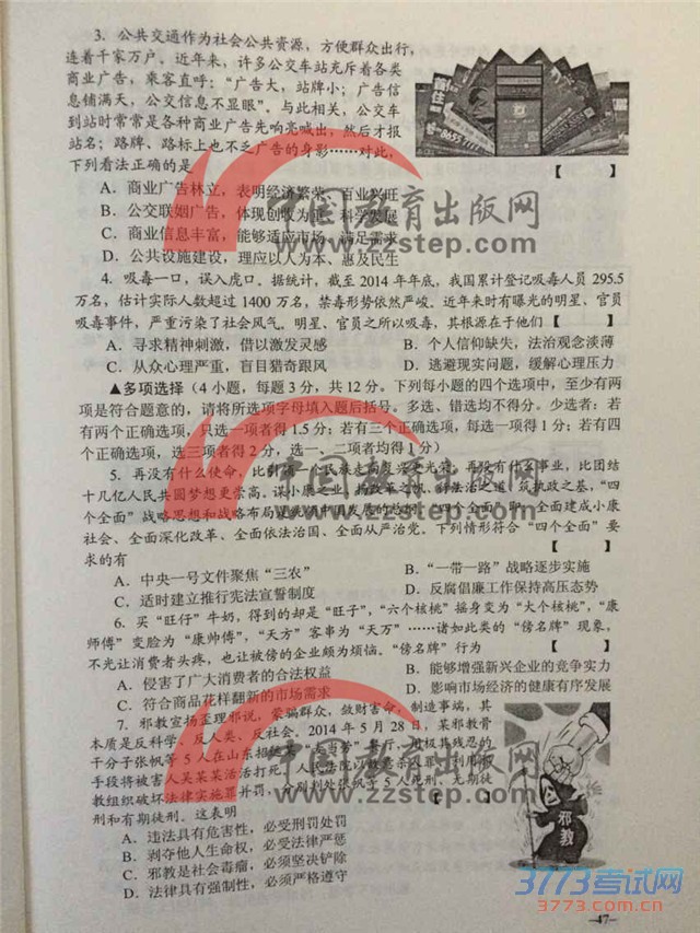 [组图]2015河南中招思想品德试题及答案评分标准