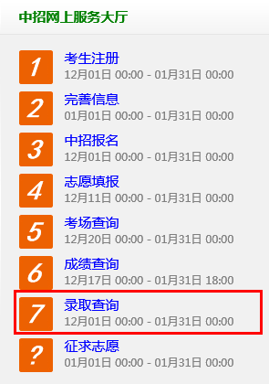 录取查询有效时间的查看:考生可以在“河南省中招考生服务平台”的首页--中招网上服务大厅中看到,即第七步的的名称“录取查询”下对应的就是有效录取结果查询时间。