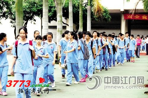 江门日报讯(记者/吕胜根) 昨天是中考的最后一天,昨天下午4点20分,随着化学考试的结束铃声响起,2012年江门市中考圆满结束。当考生们走出试室时,中考期间的所有紧张与压力全都绝尘而去。他们步伐欢快,表情轻松,迎接他们的,将是一个美妙的假期,或旅游,或做暑期工,或在家休息。当然,所有的考生都在做一件重要的事情,那就是等待录取通知书。