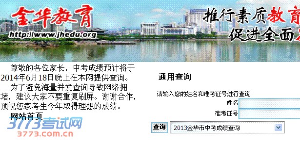 金华教育网2014中考成绩查询入口开通 :http://www.jhedu.org/